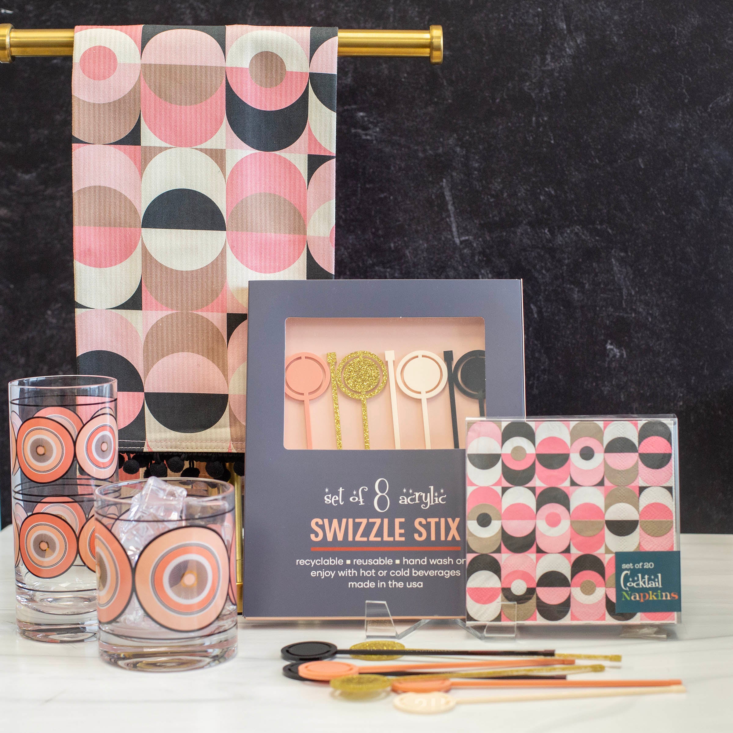 Pink and Gold Round Acrylic Swizzle Stix Drink Stirrers