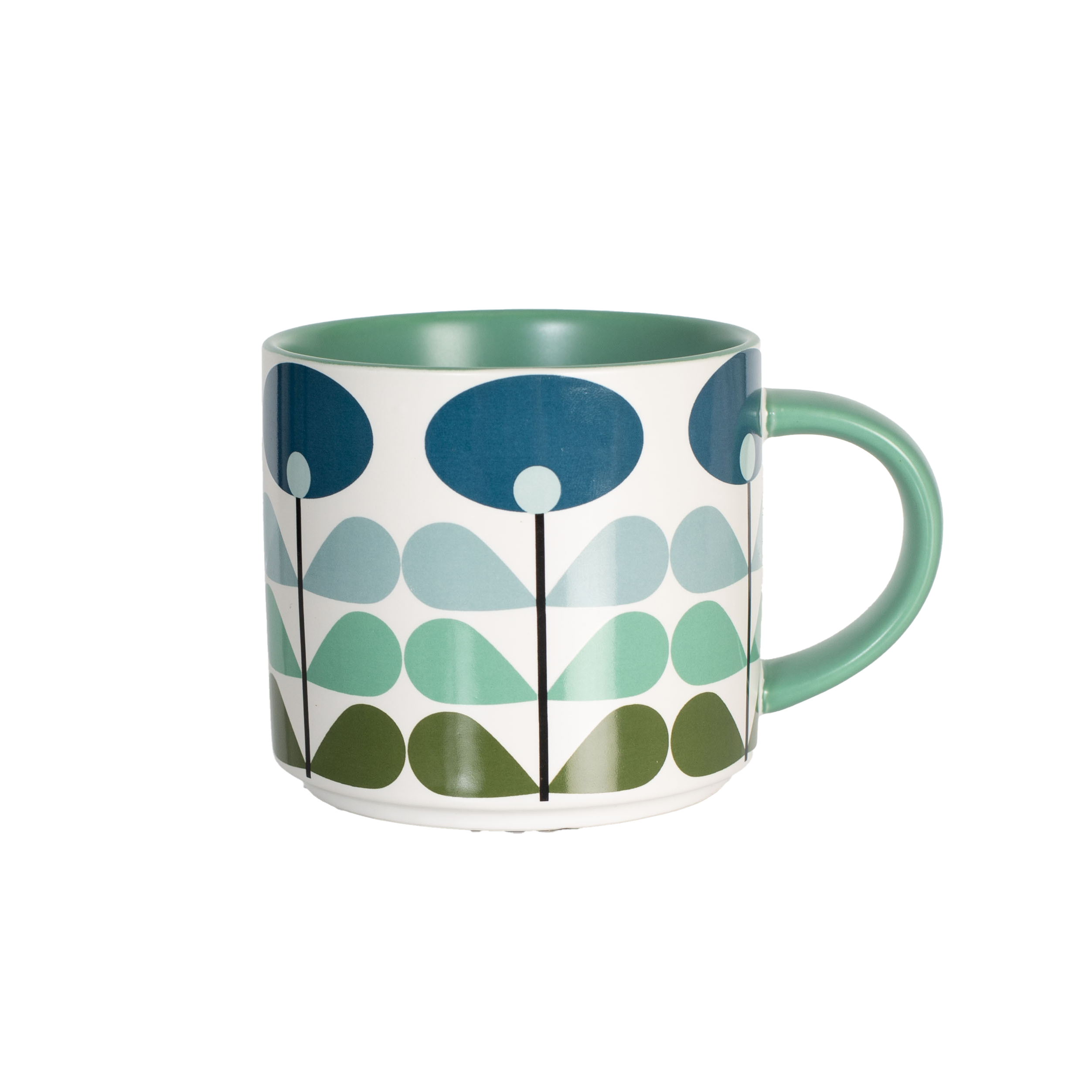 Blue Mid Century Modern Flower Stackable Matte Coffee Mug