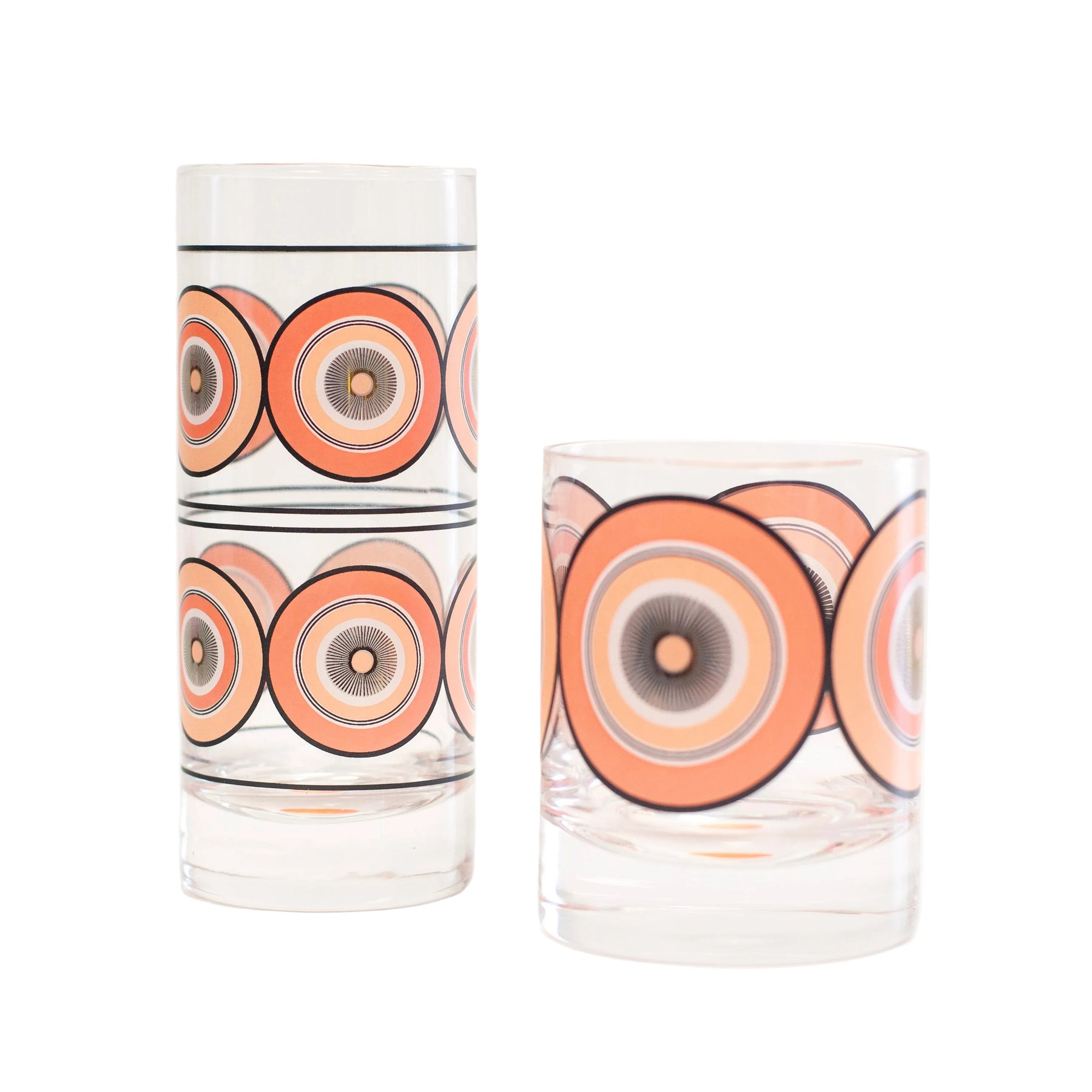 Elevate your barware collection with our Pink Circles Vintage Whiskey Cocktail Glass! This stunning glass features a pink circle design with a gold starburst for a touch of elegance. With its vintage and mid century modern vibes, it's the perfect addition to any cocktail party or gathering. Whether you prefer Whiskey, Rye, Bourbon, or Scotch, elevate your craft cocktail game and impress your guests with our vintage-inspired glass.