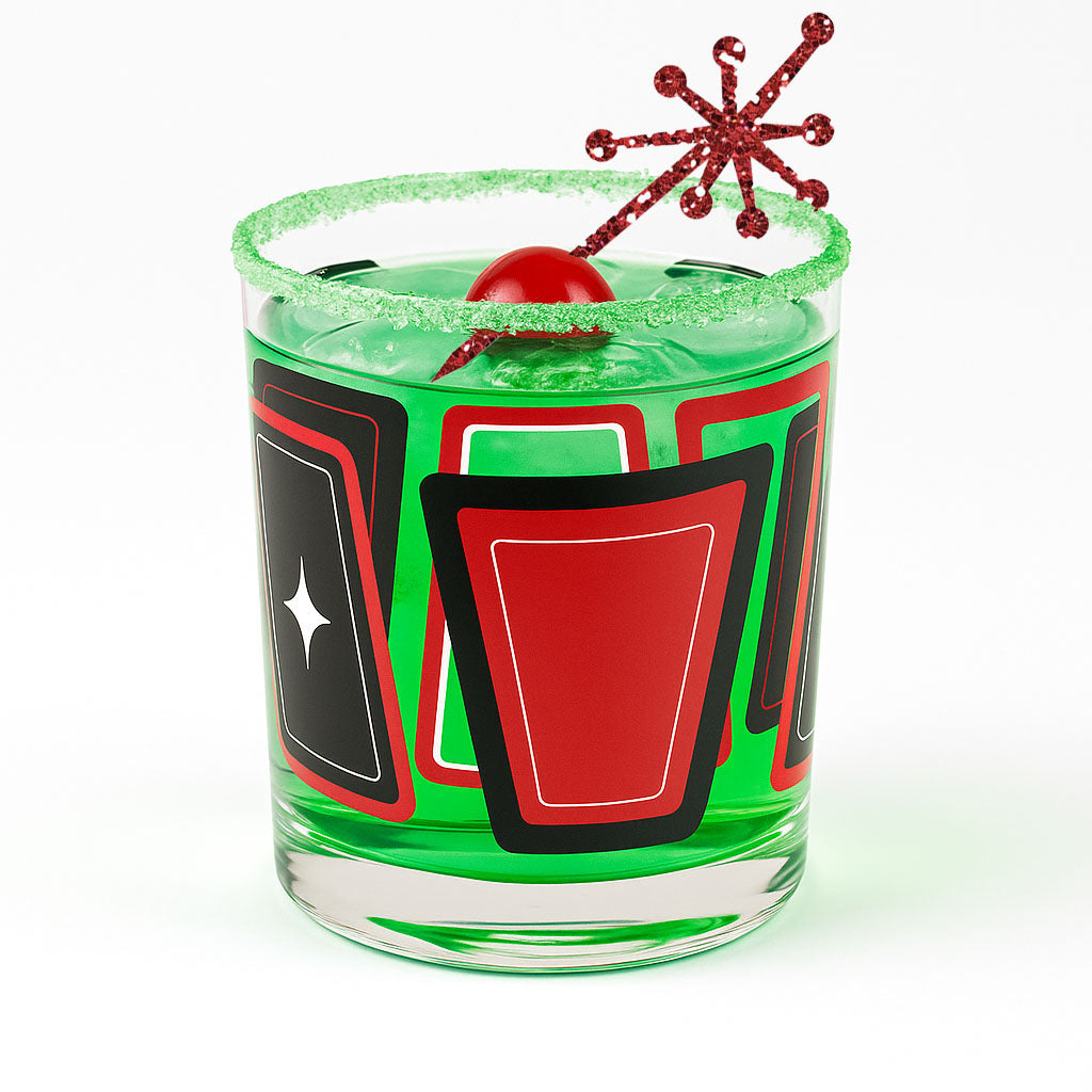 Experience the perfect blend of style and function with the Red and Black Retro Blocks Vintage Inspired Whiskey Cocktail Glass. Its striking red and black retro design adds a bold, nostalgic touch to your barware collection, making every sip bringing you back in time. Crafted with a weighted bottom quality rocks glass, it’s ideal for enjoying whiskey, scotch, bourbon or a crafted cocktail on the rocks with timeless elegance.