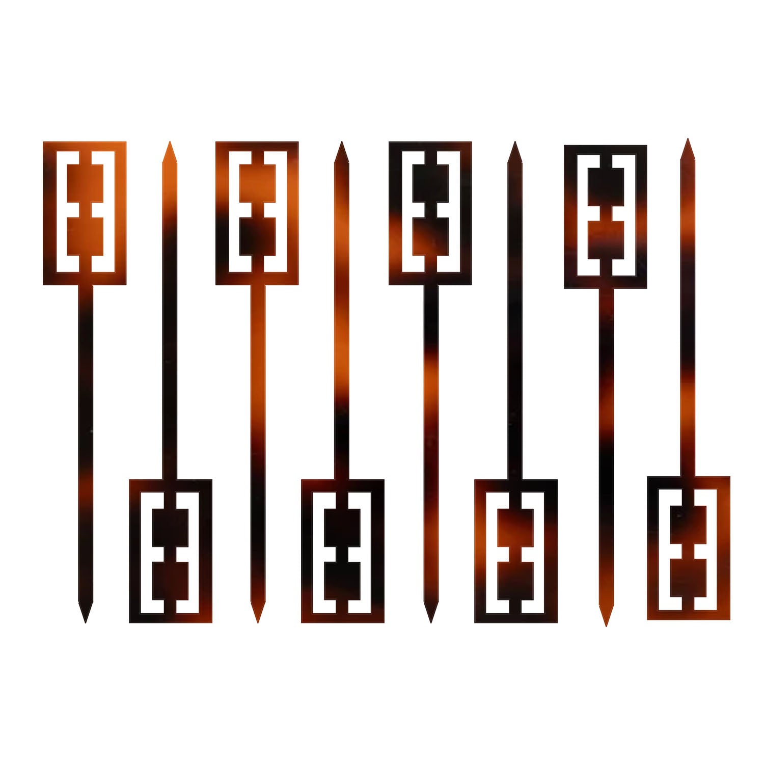 Elevate every bite with these retro-inspired acrylic cocktail and appetizer picks. Featuring a bold geometric cutout design in warm tortoiseshell tones, these reusable picks bring mid-century charm to cocktails, cheese boards, and small bites alike.