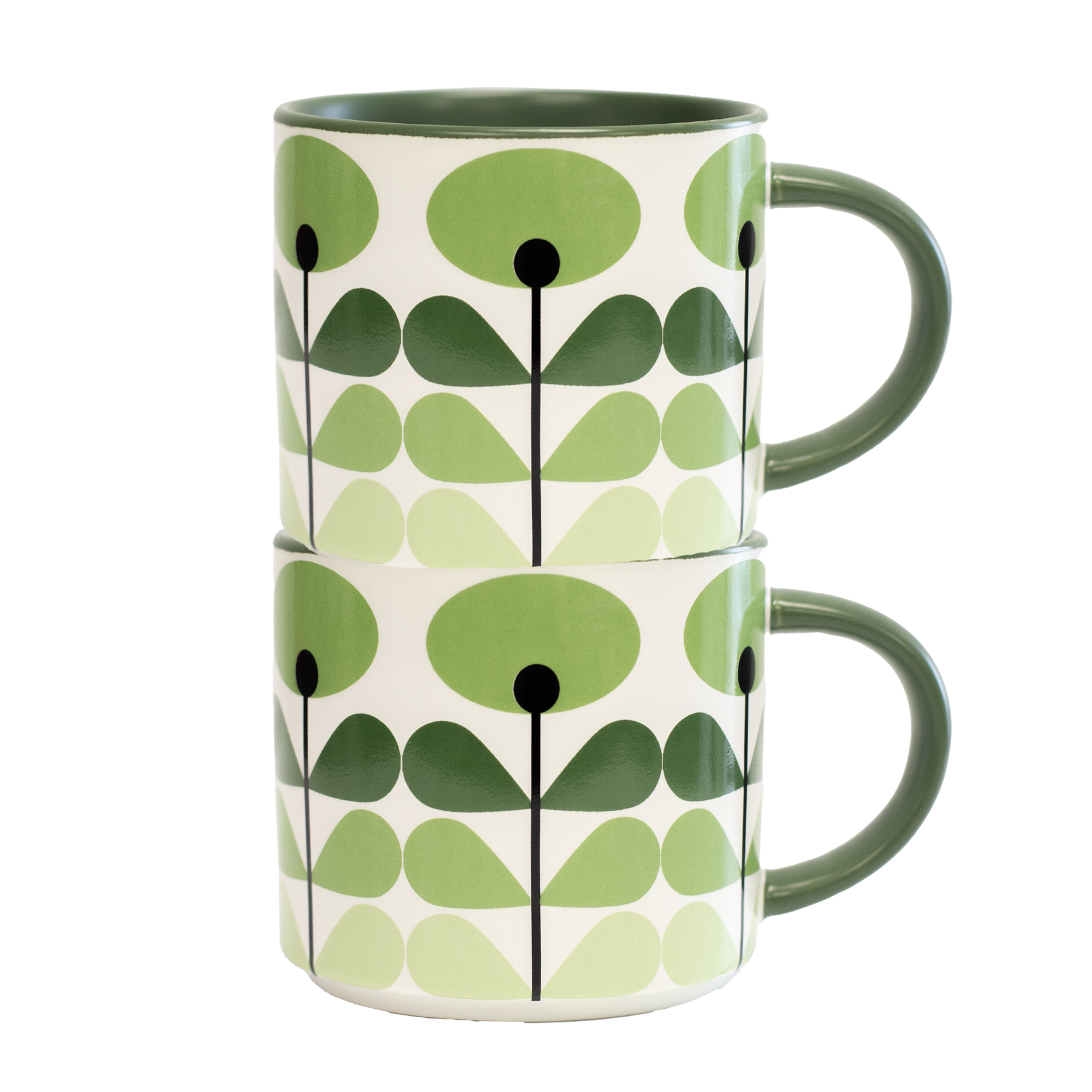 Green Mod Flower Mid Century Modern Stackable Matte Coffee Mug