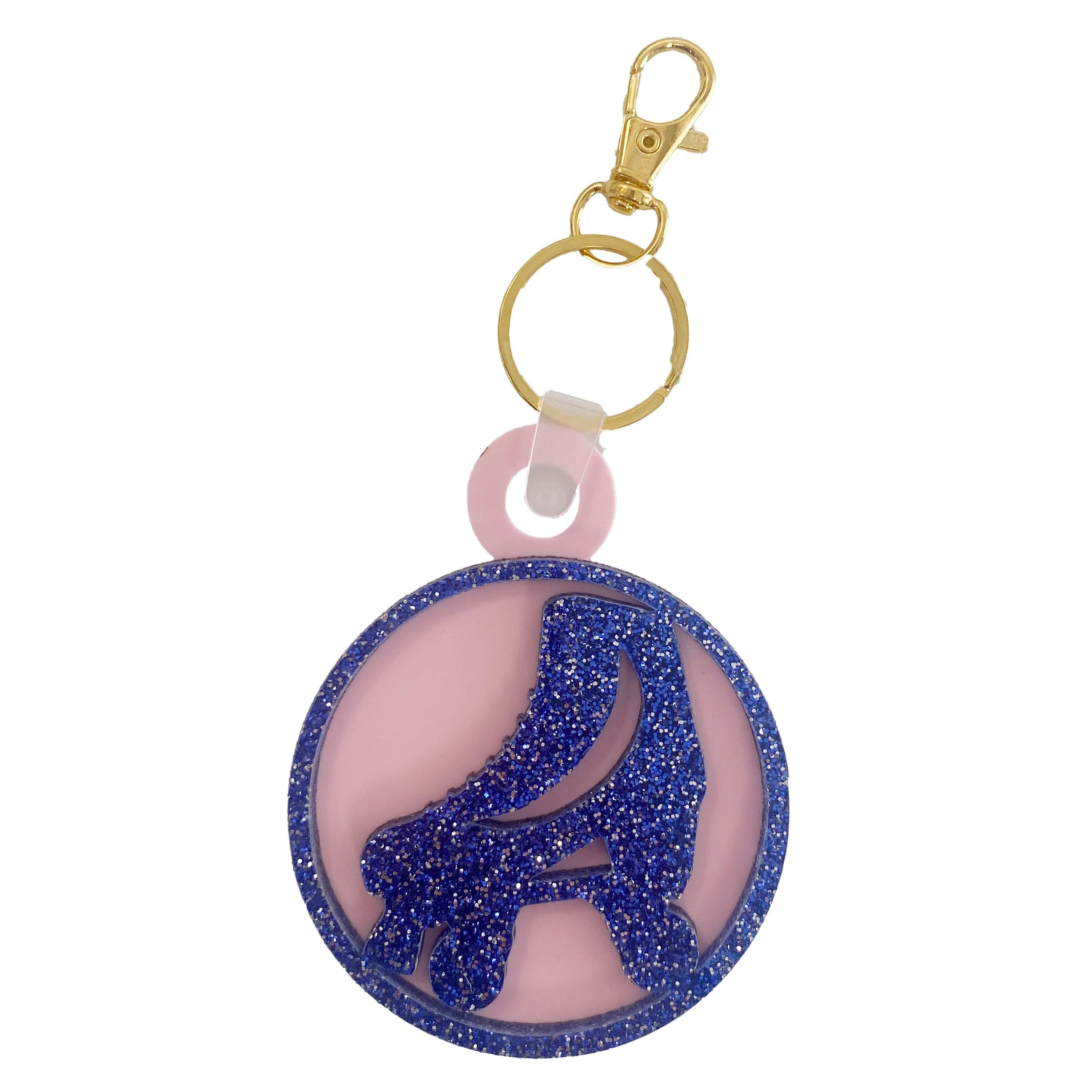 Retro Roller Skate Acrylic Round Blue Glitter Keychain