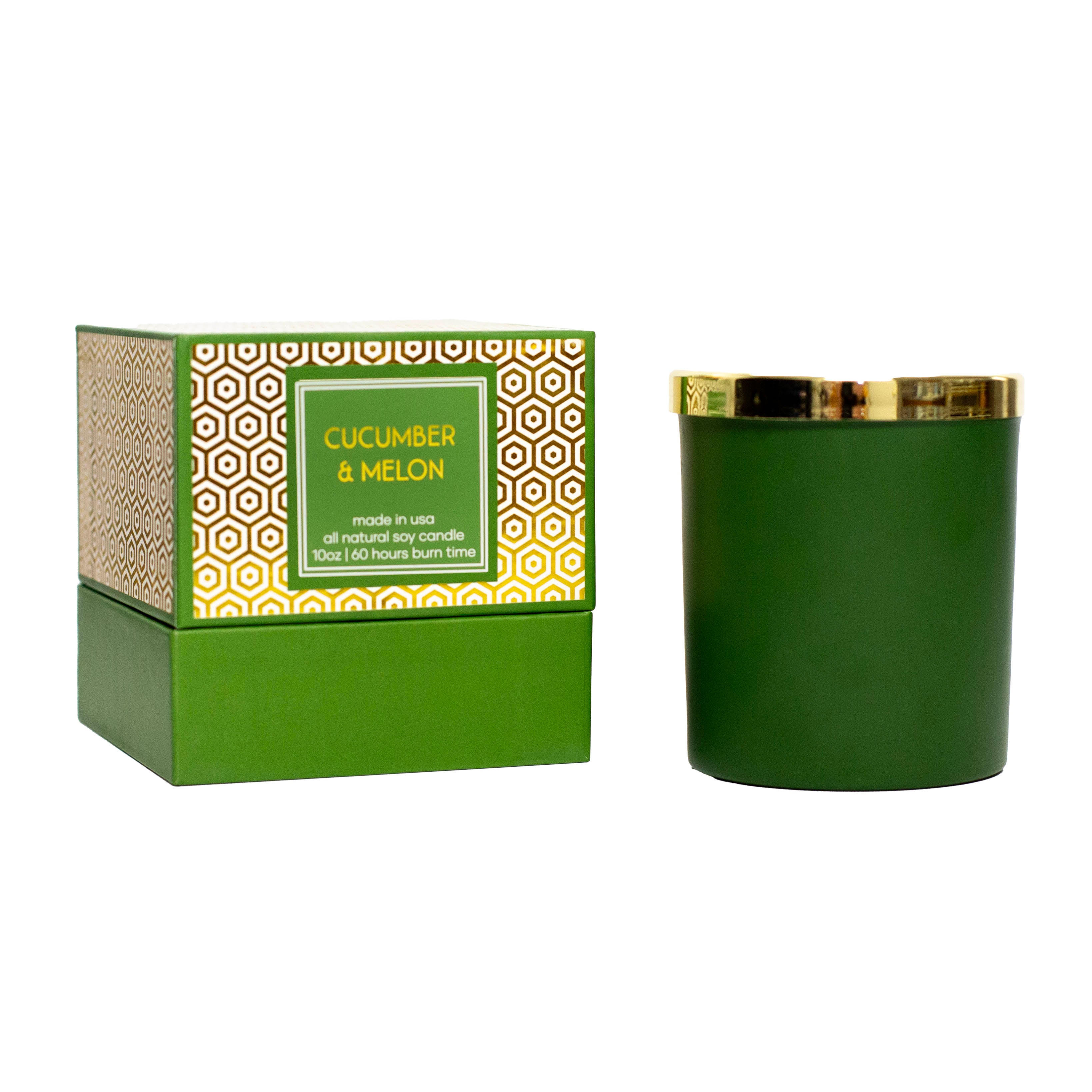 Green Cucumber Melon Mid Century Gold Foil Boxed Candle