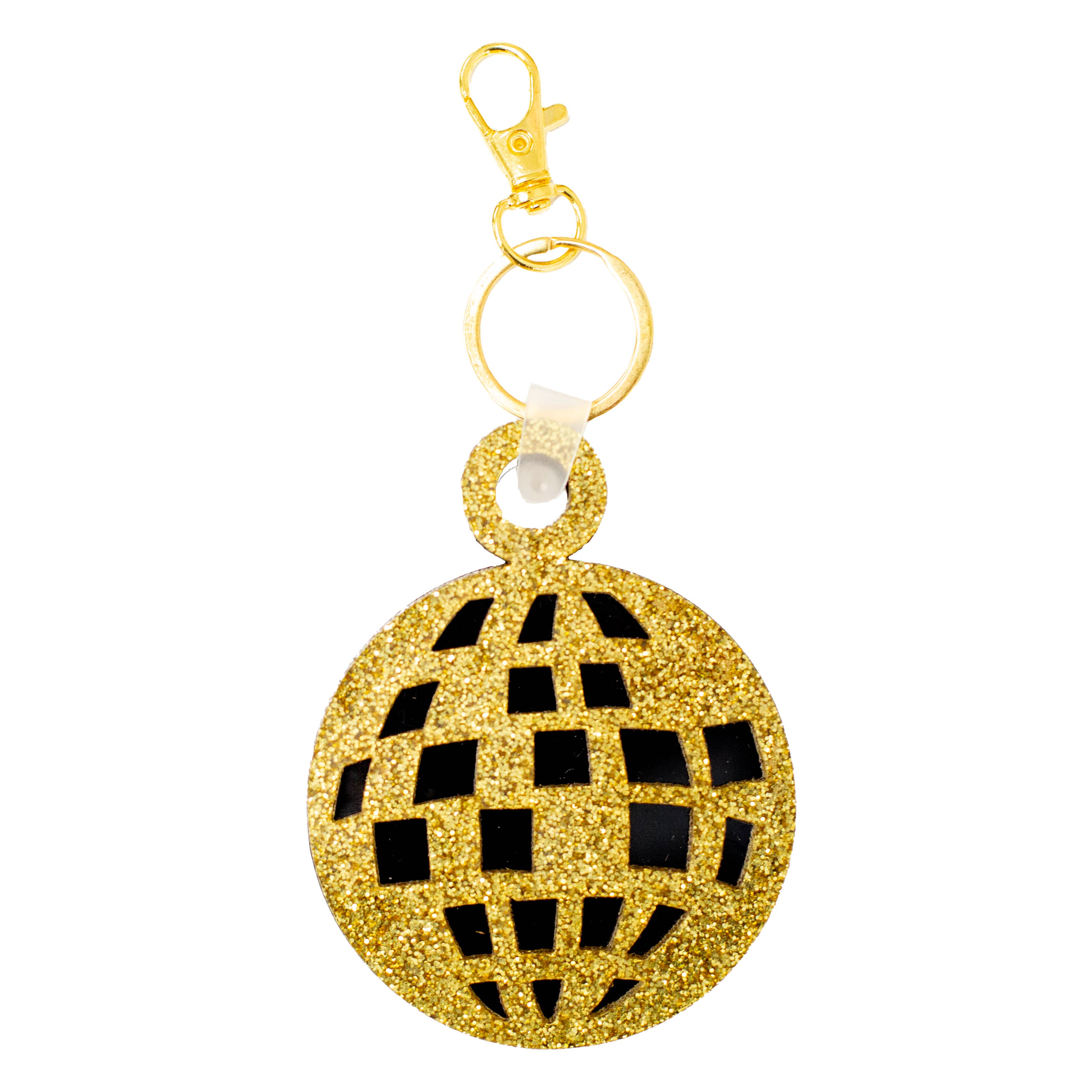Add some disco flair to your everyday essentials with our Gold Glitter Disco Ball Keychain! This eye-catching accessory features a glistening disco ball design, perfect for adding some shine to your keys or bags. The perfect accessory for any disco lover, new driver, new homeowner or someone who just wants to add a touch of bling to their daily routine. Shine on!