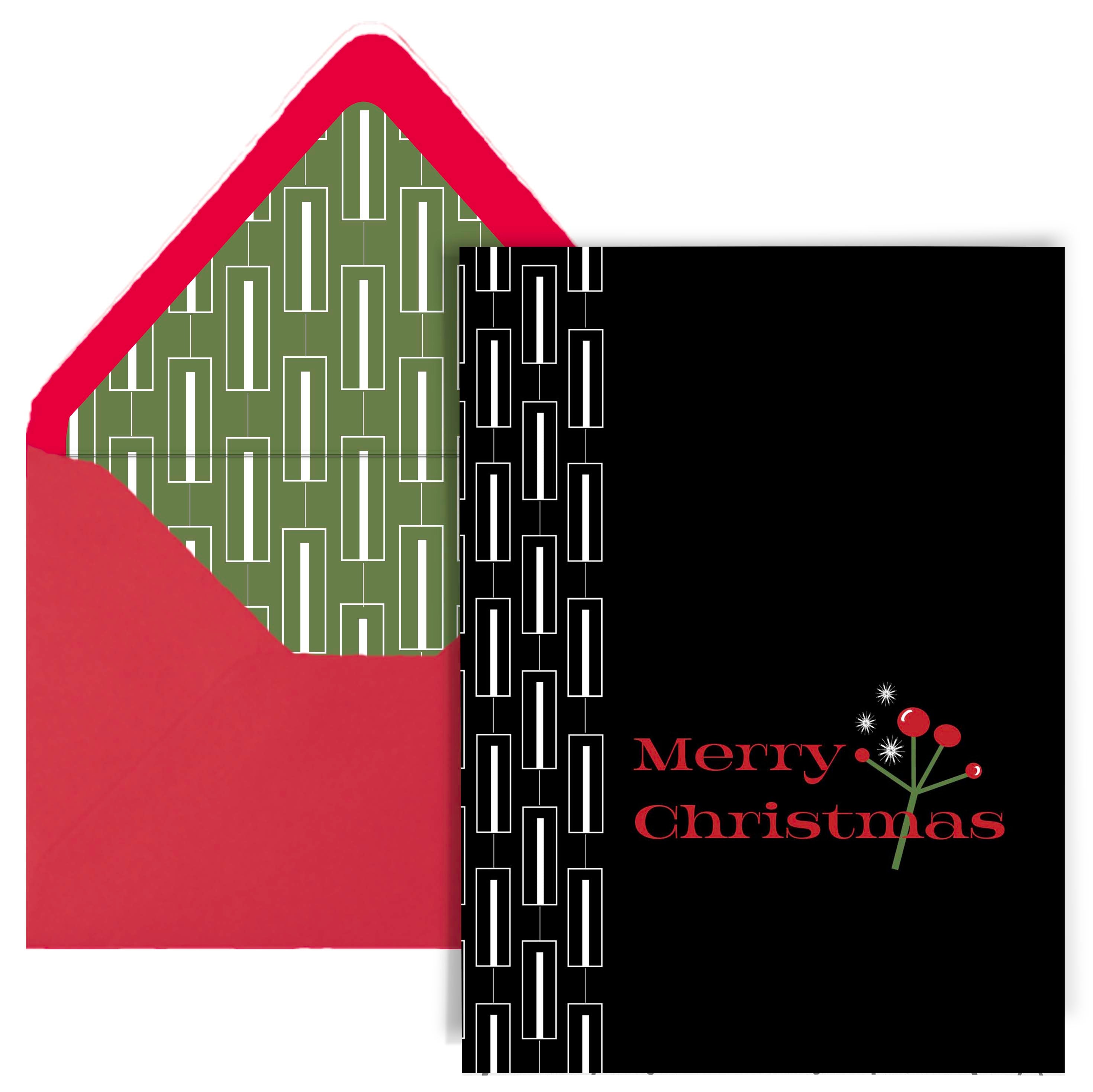 Dress your holidays in sleek, retro style. Our Mod Mistletoe collection pairs a rich red-green-black palette with mid-century mistletoe motifs to create a coordinated look from bar cart to gift wrap. Mix and match for festive parties, chic hostess gifts, and eye-catching displays.